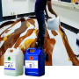 ---Good Permeability: Low viscosity, good permeability, fast curing speed.------ Strong Adhesion: It can be firmly attached to the base floor, and it is not easy to peel or fall off, ensuring the integrity and service life of the floor. ---- Aesthetics: Epoxy metal flooring is available in a variety of colors and glosses, such as high gloss, matte, etc. ---- Wear Resistance: Epoxy metal flooring has a high surface hardness and good wear resistance. ---- Easy to clean: Its surface is flat and smooth, and it is not easy to hide dirt. It can be easily cleaned using tools such as mops and sweepers. ---- Corrosion resistance: It has good to clerance to many chemicals, such as acid and alkali solutions. ---- Safety: epoxy metal floors can be added with anti-slip materials, which can effectively prevent people from slipping and falling. ---- Yellow resistant when exposed to sunlight for a long time. ---- No ripple,bright in surface,odorless,eco-friendly,nontoxic,waterproof and so on.