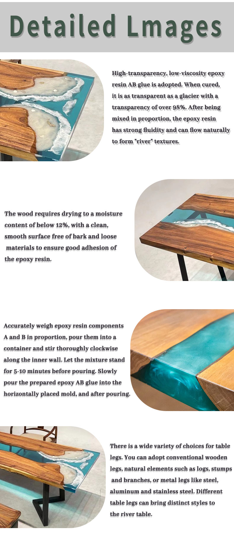 ---- Can be cured 100% at normal temperature or by heating. ---- High Gloss , Clear, Impact Strength, Water Resistant, self leveling. ---- Yellow resistant when exposed to sunlight for a long time. ---- Easy to operating and Excellent Air Release. ---- Excellent Color Stability, can use any pigment you want to add. ---- Early Development of Physical and Performance Properties ---- No ripple,bright in surface,odorless,eco-friendly,nontoxic,waterproof and so on. ---- Easy to clean and repair.