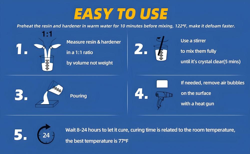 【FAST CURING】1:1 epoxy resin: about 12 hours, 2:1 epoxy resin: about 24 hours,3:1 epoxy resin: about 48 hours