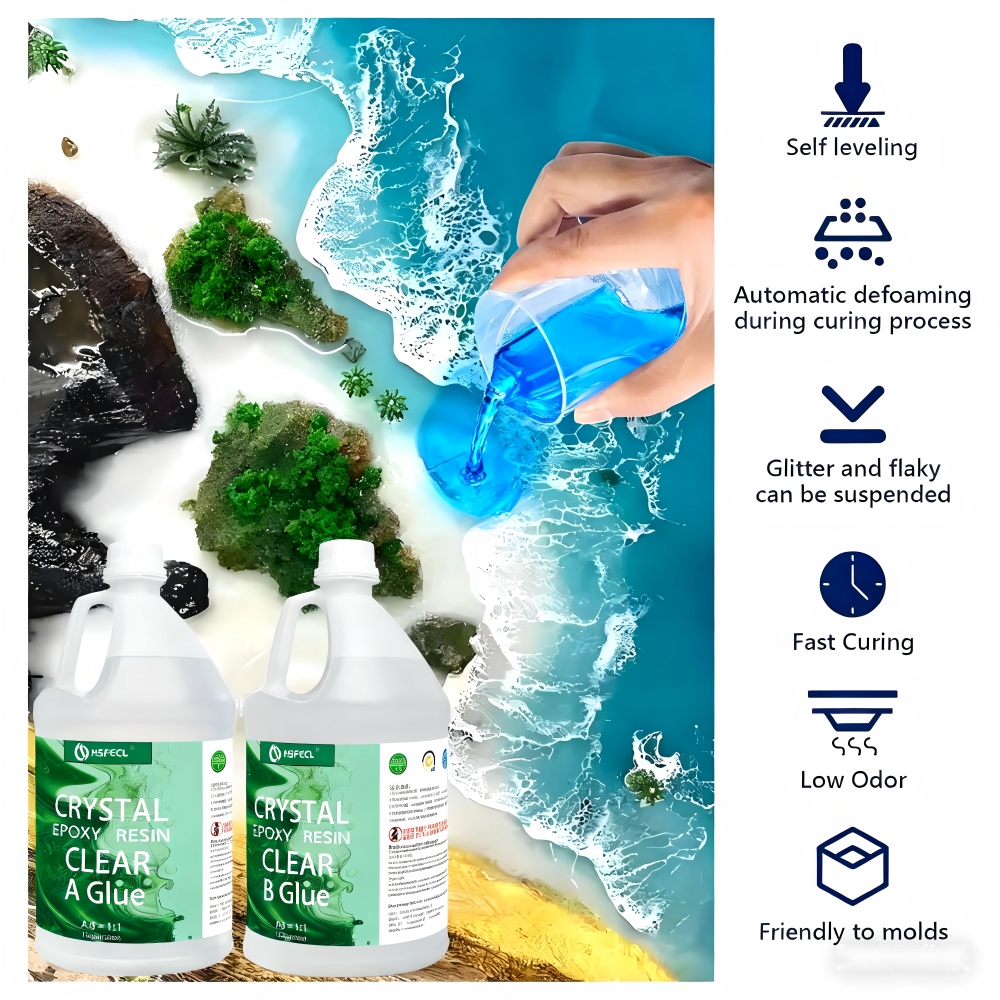* CRYSTAL CLEAR, HIGH GLOSS FINISH: Get stunningly clear, beautiful results on bar tops, table tops, and countertops. Ideal for kitchen and bath remodeling projects. * TWO PART POURABLE EPOXY IS EASY TO USE: Simple 1: 1 mix ratio, easy to tint with mica powder, alcohol ink, and liquid pigments. Self-leveling resin system is easy to pour. * DURABLE EPOXY RESISTS SCRATCHES, STAINS, AND YELLOWING: Cures smooth as glass at room temperature, with no blushing. 100% waterproof upon full cure. * WIDE RANGE OF PROJECTS: Get pro results on wood, metal, stone, ceramic and concrete tables, bar tops, countertops as well as resin art, embedding objects, decoupage, casting & other crafting projects. 1. This product can provide free sample trials. 2. Product performance can be adjusted according to customer requirements until the customer is satisfied. Can be OEM or ODM