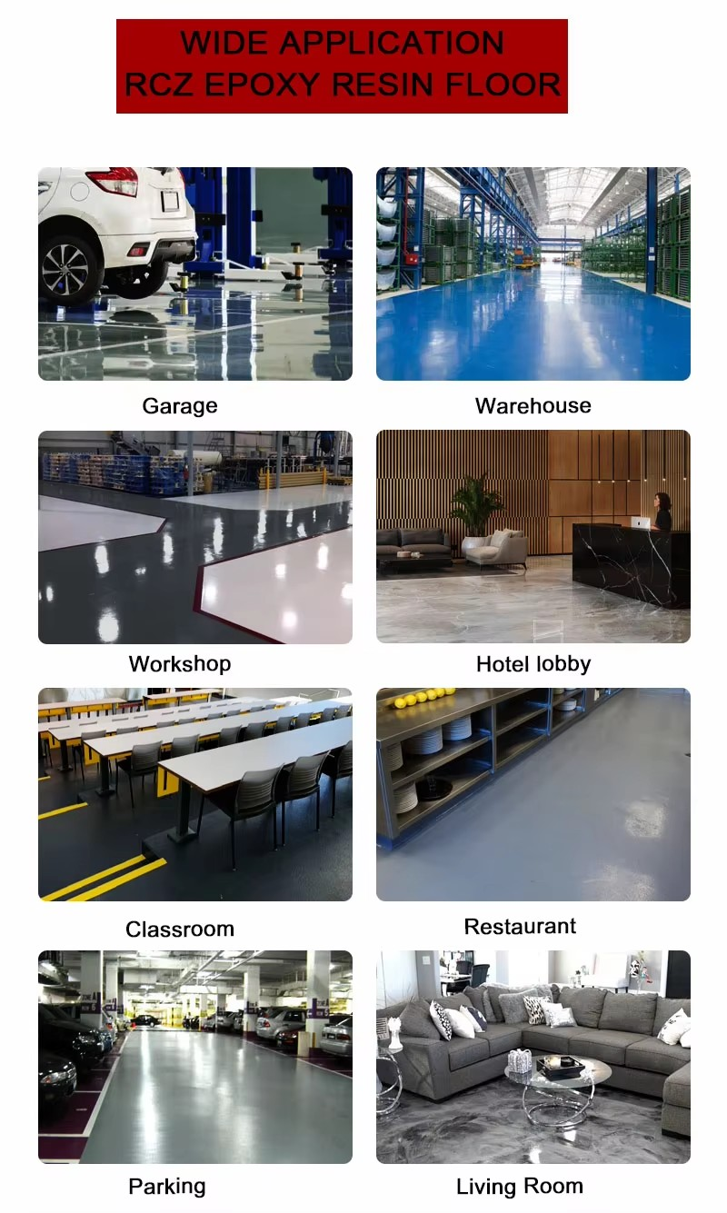 ---Good Permeability: Low viscosity, good permeability, fast curing speed.------ Strong Adhesion: It can be firmly attached to the base floor, and it is not easy to peel or fall off, ensuring the integrity and service life of the floor. ---- Aesthetics: Epoxy metal flooring is available in a variety of colors and glosses, such as high gloss, matte, etc. ---- Wear Resistance: Epoxy metal flooring has a high surface hardness and good wear resistance. ---- Easy to clean: Its surface is flat and smooth, and it is not easy to hide dirt. It can be easily cleaned using tools such as mops and sweepers. ---- Corrosion resistance: It has good to clerance to many chemicals, such as acid and alkali solutions. ---- Safety: epoxy metal floors can be added with anti-slip materials, which can effectively prevent people from slipping and falling. ---- Yellow resistant when exposed to sunlight for a long time. ---- No ripple,bright in surface,odorless,eco-friendly,nontoxic,waterproof and so on.